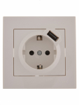 Розетка LEZARD RAIN 1-мест. в сборе с корпусом с З/К скр. уст. 16А 220-250В IP20 белыйRAIN Розетка с/з + USB разъём белый (10шт/120шт)