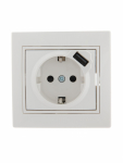 Розетка LEZARD MIRA 1-мест. в сборе с корпусом с З/К скр. уст. 16А 220-250В IP20 белыйMIRA Розетка с/з + USB разъём белый (10шт/120шт)