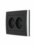 RAIN Розетка 2-я б/з керам. цв. черный бархат + хром (10шт/120шт)