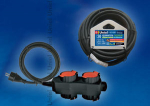 Удлинитель 4 места 16А резина черный шнур 30м ПВС IP54 с крышками Uniel StandardУдлинитель Uniel садовый серии Стандарт, с/з, 4 гн., шнур 30м., с заглушками