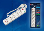 Удлинитель - сетевой фильтр 5 мест 10А пластик белый шнур 1.5м ПВС IP20 UnielS-GSP5-1,5E Фильтр сетевой Uniel серии «Energy», с/з, 5 гн., шнур 1,5 м, защита от перенапряжения, фильтр помех, термопредохранитель