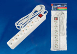 Удлинитель - сетевой фильтр 6 мест 16А пластик белый шнур 1.5м ПВС IP20 Uniel StandardS-GCD6-1,5B Удлинитель Uniel серии Стандарт, с/з, 6 гн., шнур 1,5 м , выкл.