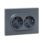 Механизм розетки двойной, 16А, с заземлением, со шторками, с рамкой, графит Эпика EKF