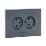 Механизм розетки двойной, 16А, без заземления, со шторками, с рамкой, графит Эпика EKF