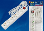 Удлинитель 6 мест пластик белый шнур 3м IP20 UnielS-GCP6-3B Удлинитель с выключателем серии General purpose, шнур 3м., 6 гнезд, с/з. Белый. ТМ Uniel.