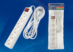 Удлинитель - сетевой фильтр 6 мест 16А пластик белый шнур 5м ПВС IP20 UnielS-GCD6-5B Удлинитель Uniel серии Стандарт, с/з, 6 гн., шнур 5 м, выкл.