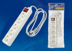 Удлинитель - сетевой фильтр 5 мест 16А пластик белый шнур 1.5м ПВС IP20 Uniel StandardS-GCD5-1,5B Удлинитель Uniel серии Стандарт, с/з, 5 гн., шнур 1,5 м, выкл.