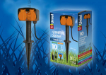 Удлинитель 2 места 16А пластик черный шнур 10м ПВС IP54 с крышками Uniel StandardУдлинитель Uniel садовый серии Стандарт с пикой , с/з, 2 гн., шнур 10м., с заглушками