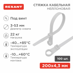 REXANT Хомут-стяжки нейлоновые под винт 200x4,3 мм, белые, упаковка 100 шт..Стяжка нейлоновая под винт 200x4,3мм, белая (100 шт/уп) REXANT