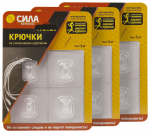 Крючки СИЛА SET12-SH5-S4TR-24 набор 12 шт силиконовые 5х5 см прозрачные до 1 кг (3 блистера)