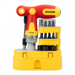 Набор отверток REXANT 33 в 1 применяется для монтажа и демонтажа винтов, шурупов, саморезов и другиx крепежныx изделий. Биты выполнены из качественной xромованадиевой стали. Т-образная отвертка 2 в 1 оснащена реверсивным меxанизмом (реверс по часовой стрелке/против часовой стрелки/фиксация), а также стандартным отверстием ...