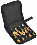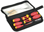 Набор диэлектрического инструмента N-01 серии К3 (Expert) рассчитан на использование под напряжением до 1000 В. Комплект включает в себя пассатижи 160мм, бокорезы 160мм и тонкогубцы 160мм, крестообразные отвертки PH1х80, PH2х100; шлицевые отвертки SL2,5х75, SL4,0х100, SL5,5х125 и отвертку-пробник ОП-1.