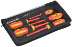 Набор диэлектрических отверток серии К3 рассчитан на использование под напряжением до 1000В. Набор включает в себя: крестообразную отвертку PH2х100; шлицевые - SL2,5х75, SL4,0х100, SL5,5х125; пассатижи К3 160мм и отвертку-пробник ОП-1.