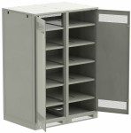Шкафы LINEA B повышенной прочности со сварным каркасом и усиленными полками позволяют размещать АБ до 500 кг. на полке.