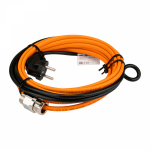 нагревательный кабель для обогрева трубопроводов с питьевой водой. Применение внутри трубы. В комплект поставки входят: смуфтированная греющая секция на основе саморегулирующегося кабеля, евровилка для подключения, сальниковый узел для ввода в трубу. Имеет гигиенический сертификат.