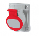 Розетка силовая (CEE) панельная фланцевая 4Р 85x75 400 В (50+60 ГЦ) КРАСНАЯ 6ч пластик IP67 IEK (ИЭК)Розетка встр. пр. ССИ-6242 32А-6ч 380В 3P+PE IP67 IEK